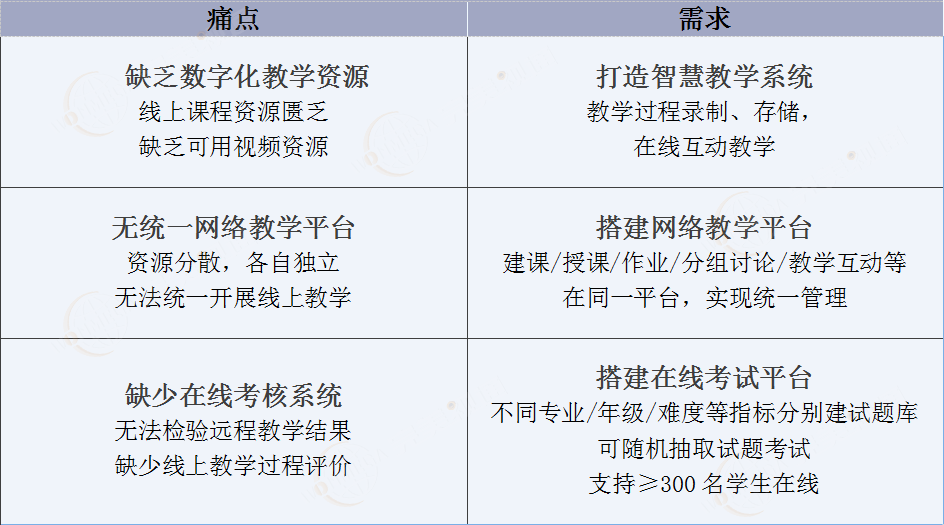 校园信息化建设不断发展,学校在校园网络升级、教室投影设备、教学软件、摄像头等方面做了很多投入,但由于受时间、需求、技术迭代、预算等方面影响,不同的投入相对分散,仍然没有构建起完整的智慧课堂系统。