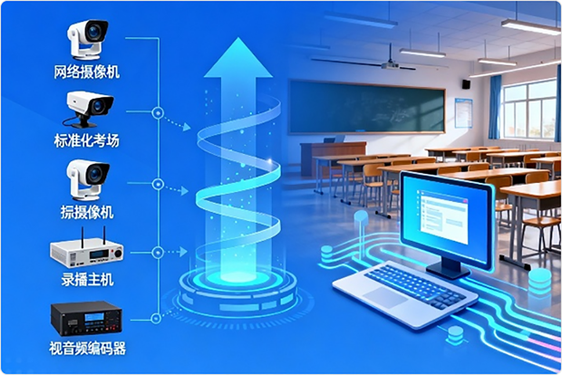 支持网络摄像机、标准化考场摄像机、录播主机、视音频编码器等设备作为信号源接入
